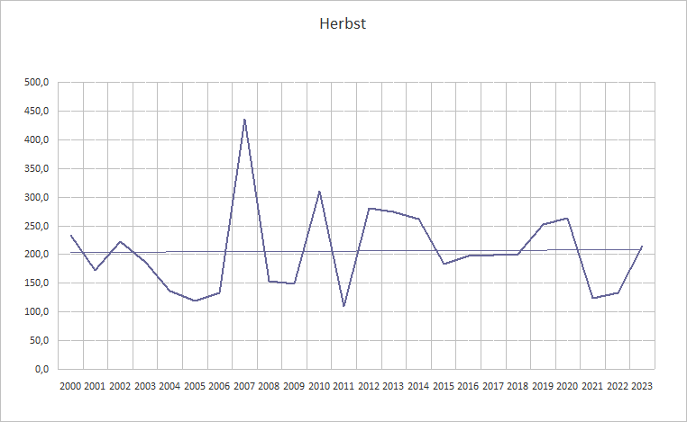 | Niederschlagsmengen Herbst | ||||||||||||||||||||||||||||||