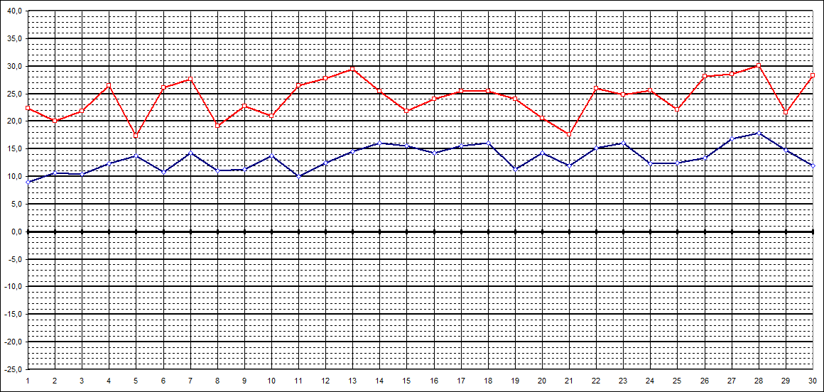 | Tagestiefstt. | 9,0 | 10,7 | 10,4 | 12,3 | 13,8 | 10,8 | 14,3 | 11,0 | 11,3 | 13,8 | 10,0 | 12,4 | 14,5 | 16,1 | 15,5 | 14,3 | 15,5 | 16,1 | 11,3 | 14,3 | 12,0 | 15,1 | 16,0 | 12,3 | 12,5 | 13,4 | 16,8 | 17,8 | 14,8 | 12,0 | |||||||||||||||||||||||||||||||||||||||||||||||||||||||||||||||||||||||||||||||||||||||||||||||||||||||||||||||||||||||||||||||||||||||||||||||||||||||||||||||||||||||||||||||||||||||||||||||||||||||||||||||||||||||||||||||||