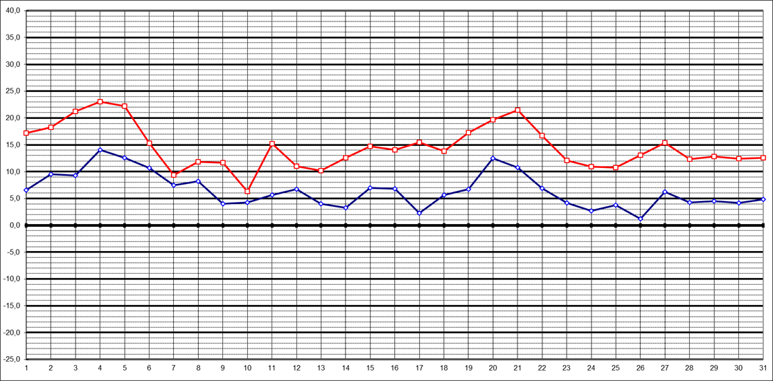 | Tagestiefstt. | 6,6 | 9,5 | 9,3 | 14,1 | 12,6 | 10,7 | 7,5 | 8,2 | 4,0 | 4,3 | 5,7 | 6,7 | 4,0 | 3,3 | 7,0 | 6,8 | 2,3 | 5,7 | 6,7 | 12,5 | 10,8 | 6,9 | 4,2 | 2,7 | 3,8 | 1,2 | 6,2 | 4,3 | 4,5 | 4,2 | 4,8 | ||||||||||||||||||||||||||||||||||||||||||||||||||||||||||||||||||||||||||||||||||||||||||||||||||||||||||||||||||||||||||||||||||||||||||||||||||||||||||||||||||||||||||||||||||||||||||||||||||||||||||||||||||||||||||||||||||||||||||||||||||||||||||||||||||||||||||||||||||||||||||||||||||||||||||||||||||||||||||||||||||||||||||||||||||||||||||||||||||||||||||||||||||||||||||||||||||||||||||||||||||||||||||||||||||||||||||||||||||||||||||||||||||||||||||||||||||||||||||||||||||||||||||||||||||||||||||||||||||||||||||||||||||||||||||||||||||||||||||||||||||||||||||||||||||||||||||||||||||||||||||||||||||||||||||||||||||||||||||||||||||||||||||||||||||||||||||||||||||||||||||||||||||||||||||||||||||||||||||||||||||||||||||||||||||||||||||||||||||||||||||||||||||||||||||||||||||||||||||||||||||||||||||||||||||||||||||||||||||||||||||||||||||||||||||||||||||||||||||||||||||||||||||||||||||||||||||||||||||||||||||||||||||||||||||||||||||||||||||||||||||||||||