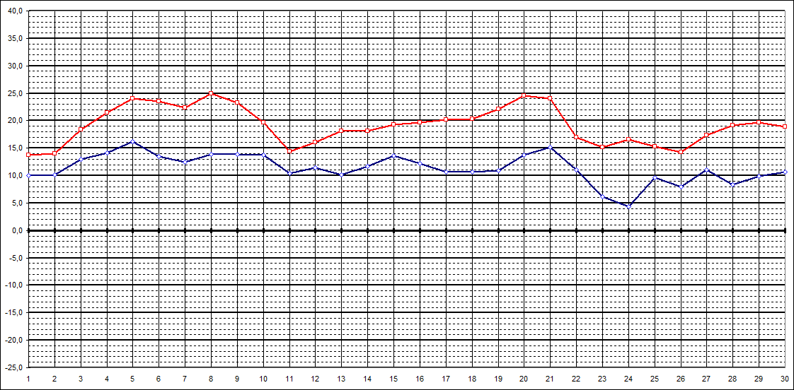 | Tagestiefstt. | 10,0 | 10,2 | 13,0 | 14,1 | 16,2 | 13,5 | 12,4 | 13,9 | 13,9 | 13,8 | 10,4 | 11,4 | 10,1 | 11,7 | 13,6 | 12,2 | 10,7 | 10,6 | 10,9 | 13,7 | 15,1 | 11,1 | 6,1 | 4,4 | 9,6 | 7,9 | 11,0 | 8,3 | 9,9 | 10,6 | |||||||||||||||||||||||||||||||||||||||||||||||||||||||||||||||||||||||||||||||||||||||||||||||||||||||||||||||||||||||||||||||||||||||||||||||||||||||||||||||||||||||||||||||||||||||||||||||||||||||||||||||||||||||||||||||||