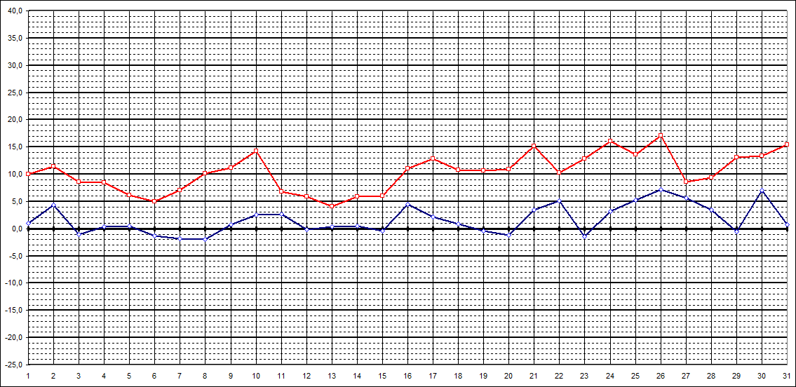 | Tageshöchstt. | 10,0 | 11,4 | 8,6 | 8,5 | 6,2 | 5,0 | 7,1 | 10,2 | 11,2 | 14,2 | 6,8 | 5,9 | 4,1 | 5,9 | 6,0 | 11,1 | 12,9 | 10,8 | 10,6 | 10,9 | 15,2 | 10,3 | 12,8 | 16,1 | 13,6 | 17,1 | 8,6 | 9,4 | 13,1 | 13,4 | 15,4 | ||||||||||||||||||||||||||||||||||||||||||||||||||||||||||||||||||||||||||||||||||||||||||||||||||||||||||||||||||||||||||||||||||||||||||||||||||||||||||||||||||||||||||||||||||||||||||||||||||||||||||||||||||||||||||||||||
