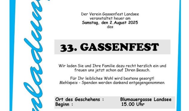 WeiterlesenAm Samstag, 02.08.2025 findet das 33.Gassenfest in der Blumauergasse statt. Beginn 15 Uhr