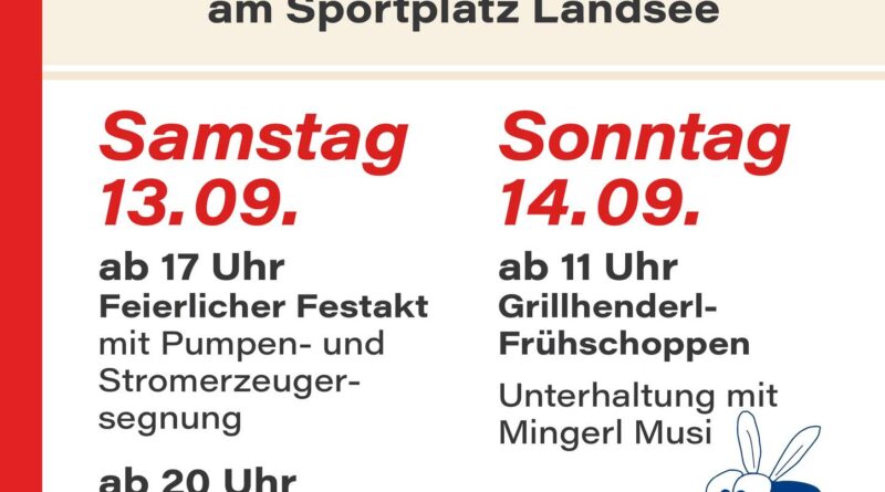 WeiterlesenDie Freiwillige Feuerwehr lädt zur großen Jubiläums-Feier am Sportplatz ein. Termin: Samstag, 13.9.2025 ab 17Uhr Am Sonntag, 14.9.2025 findet der