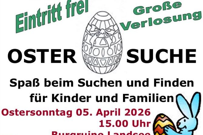 Der Verschönerungsverein lädt zur Ostereiersuche am 5.4.2026 ab 15:00 Uhr ein.
